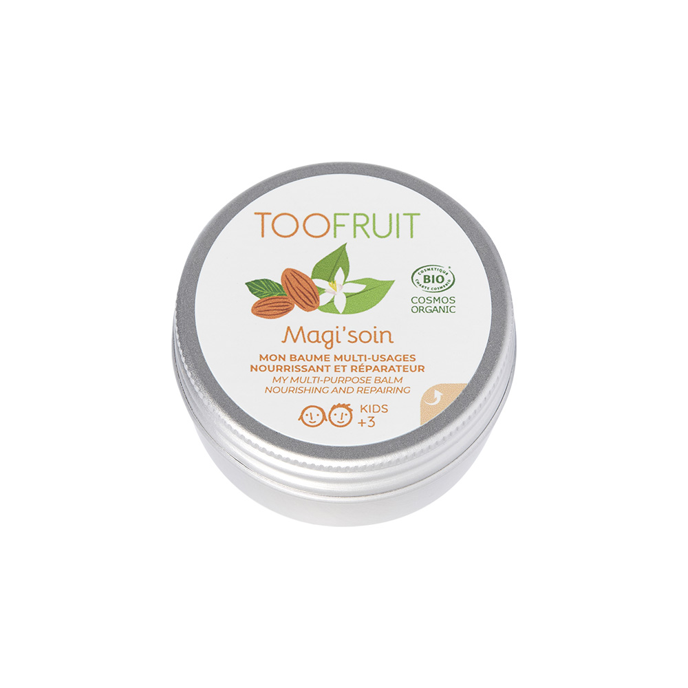 Certyfikowany, organiczny balsam wielofunkcyjny, stworzony specjalnie dla dzieci. Odżywczy, kojący i regenerujący, dzięki swojej rozpływającej się konsystencji, łatwo się aplikuje na wszystkie suche, szorstkie i wrażliwe partie ciała (ciało, twarz, usta, dłonie, włosy). Tworzy ochronną warstwę chroniącą skórę przed wysuszeniem. Praktyczny rozmiar i wszechstronność sprawiają, że jest niezbędny w każdej kosmetyczce. Składniki aktywne: - Organiczny olej ze słodkich migdałów, bogaty w kwasy tłuszczowe, ma właściwości zmiękczające, zmiękczające i kojące. - Ekstrakt z kwiatu pomarańczy działa antybakteryjnie i nadaje delikatny zapach. - Organiczny olej słonecznikowy, bogaty w witaminę E i kwasy omega-6, ma właściwości nawilżające i odżywcze. - Organiczny wosk pszczeli, bogaty w witaminę A, ma właściwości nawilżające i ochronne. Tworzy na skórze warstwę ochronną, chroniąc ją przed szkodliwym działaniem czynników zewnętrznych i wysuszeniem. Pomaga naturalnie zmiękczyć i nawilżyć skórę, włosy i usta. - Olej sojowy, bogaty w witaminę E, proteiny i kwasy tłuszczowe, ma właściwości odżywcze, zmiękczające i nawilżające. - Organiczny olej kokosowy jest bogaty w kwasy tłuszczowe, szczególnie kwas laurynowy. Ma właściwości nawilżające, odżywcze i zmiękczające. - Organiczny olej z pestek malin jest bogaty w kwasy tłuszczowe, szczególnie kwasy omega-3 i omega-6. Ma właściwości odżywcze, kojące i antyoksydacyjne. - Oliwa z oliwek jest bogata w kwasy tłuszczowe, szczególnie omega-9, witaminę E i fitosterole. Ma właściwości antyoksydacyjne, zmiękczające i kojące.